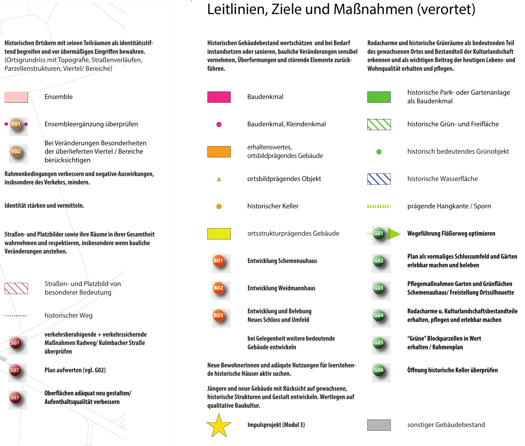 Das Modul 1 dokumentiert und bewertet den baulichen und städtebaulichen Bestand eines historischen Ortskerns oder eines Quartiers
