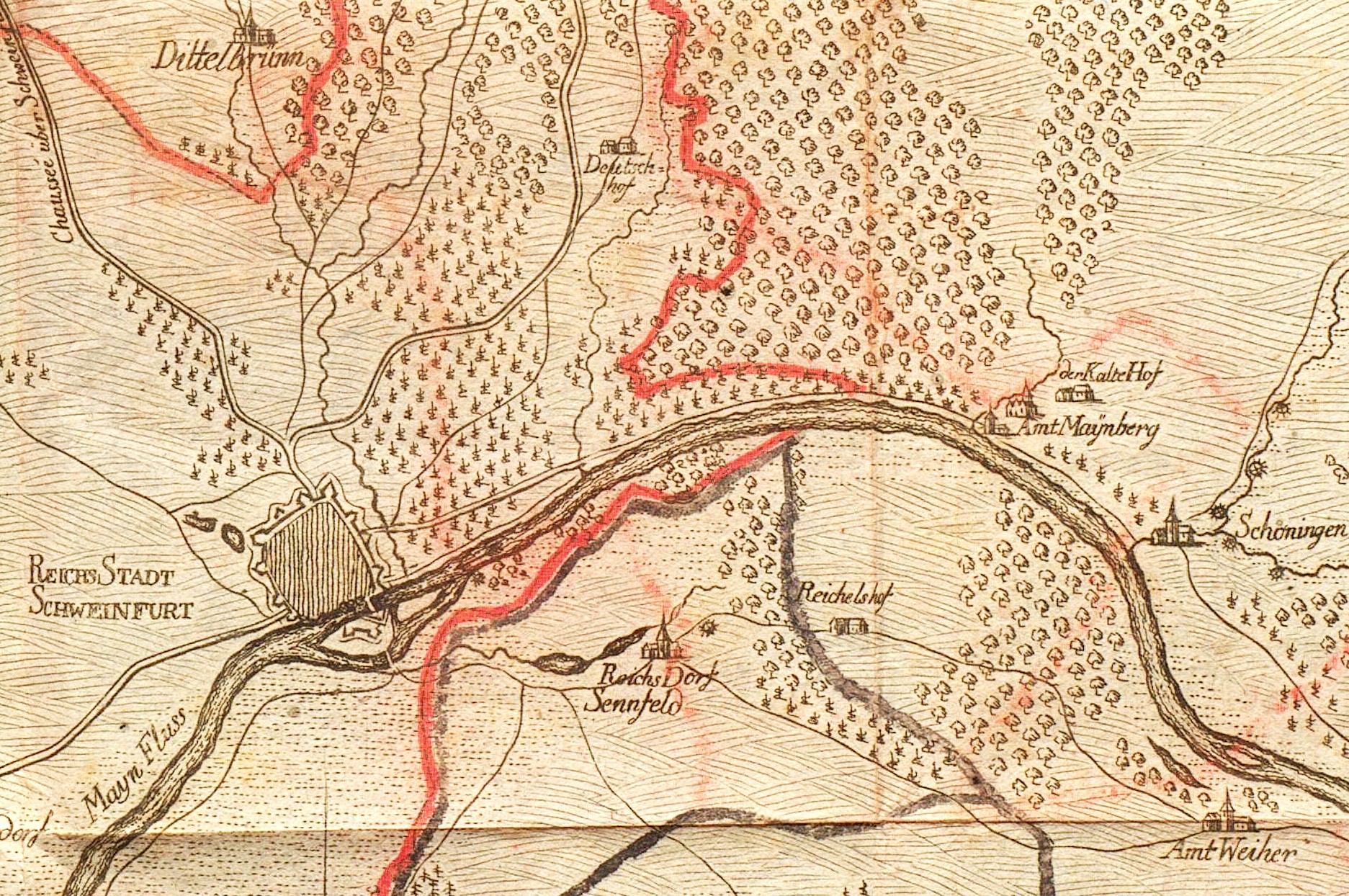 Gebiet über die Jahrhunderte oft Schauplatz territorialpolitischer Auseinandersetzungen, da es das Grenzgebiet zwischen der Reichsstadt Schweinfurt und dem Hochstift Würzburg darstellte