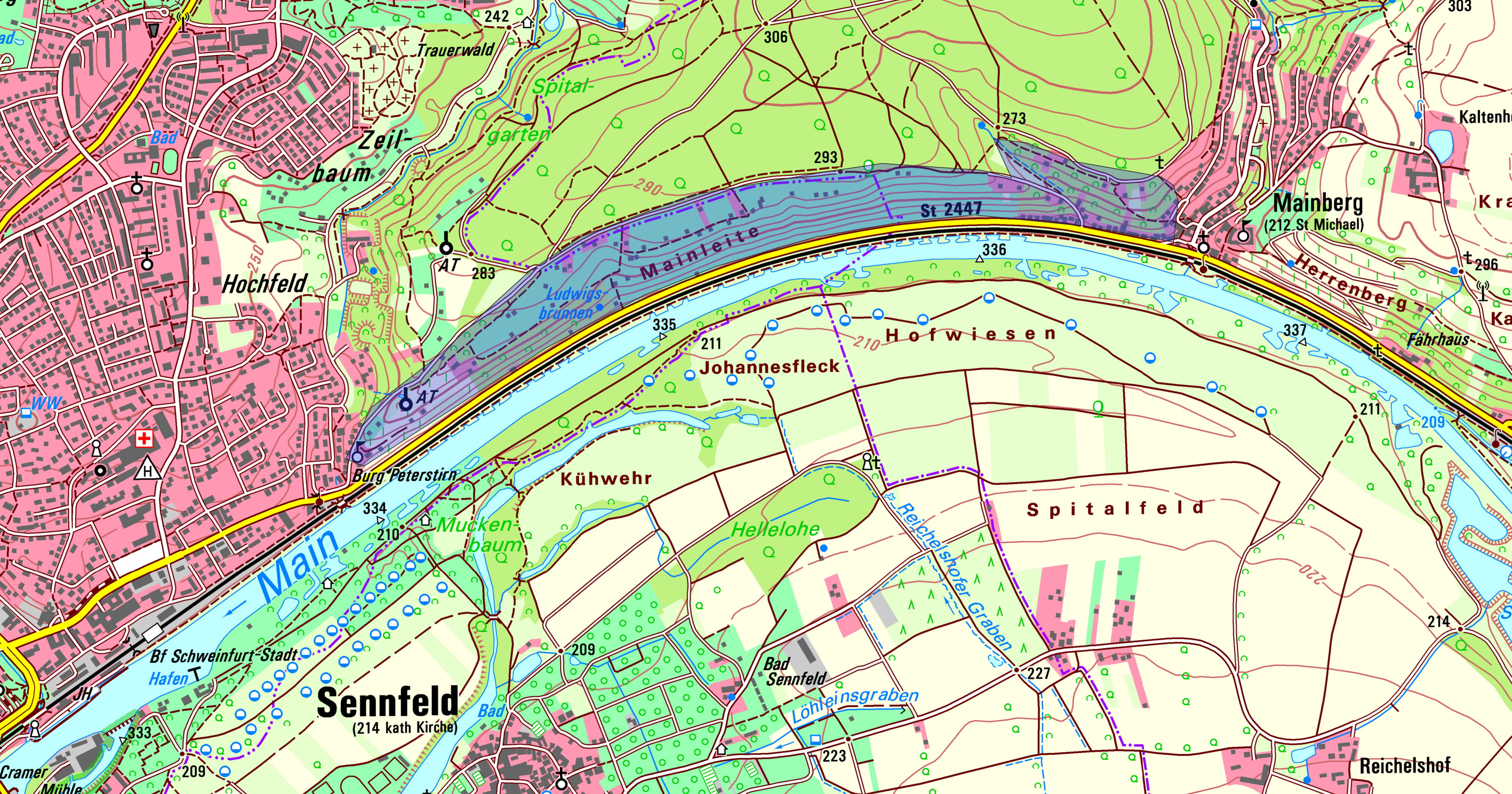 Die Mainleite erscheint heute weit außerhalb der Kernstadt Schweinfurt, schon fast auf dem Land gelegen.