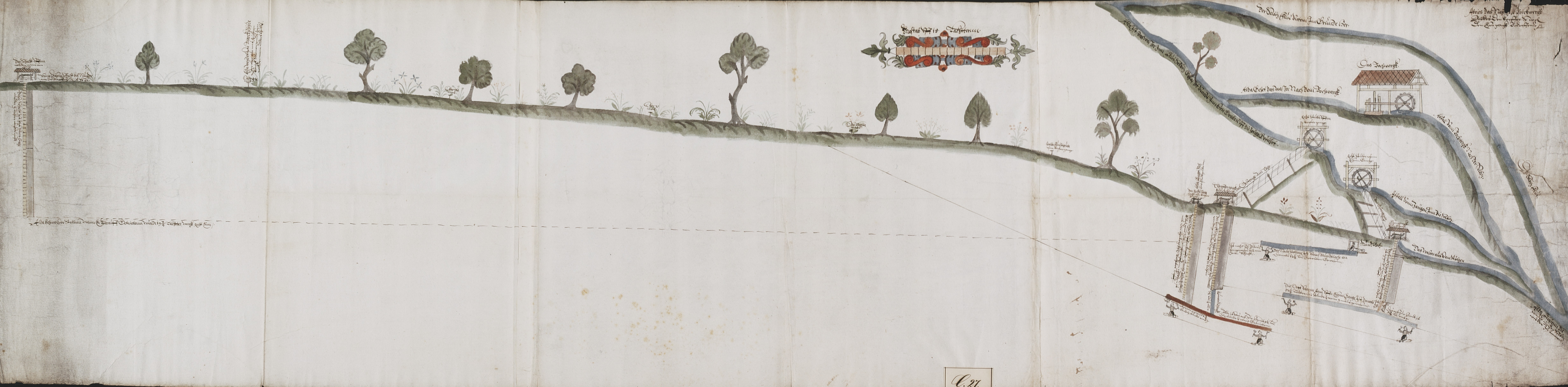 Detaildarstellung der Wasserkunst mit den beiden Kunstgezeugen für den Kupfergang und den Eisengang