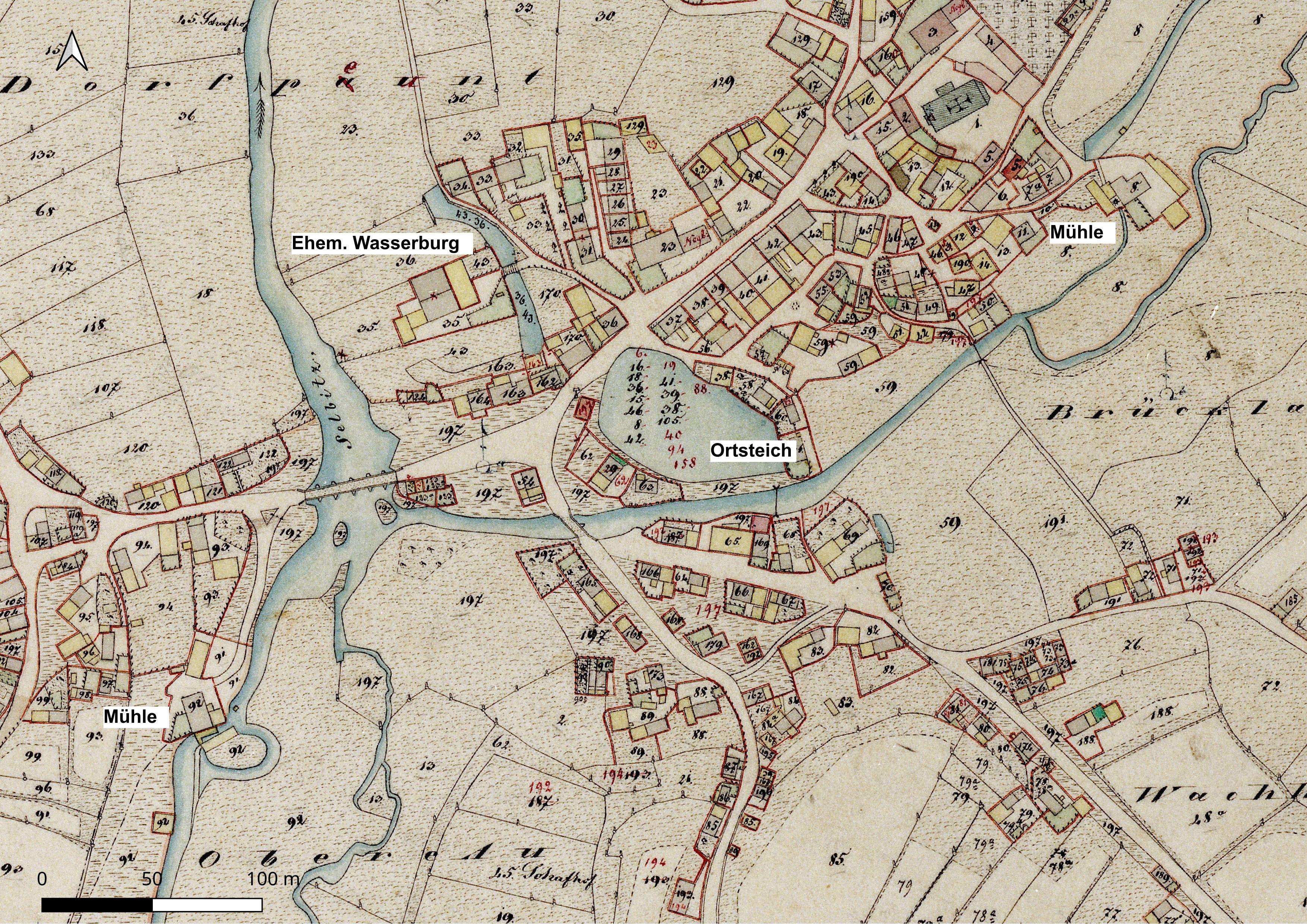 Selbitz – Uraufnahme 1852 Gewässer innerhalb der Siedlung