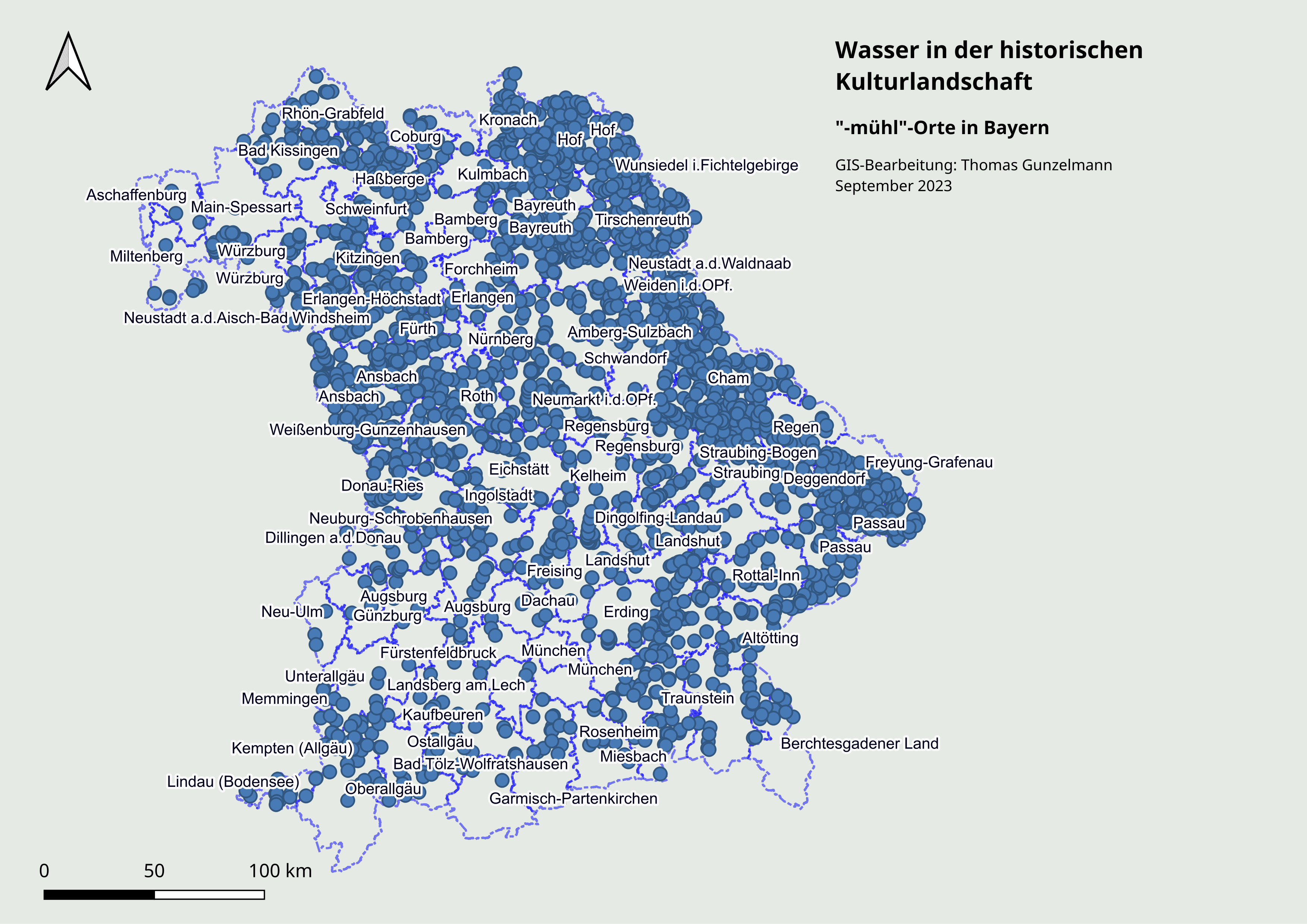 „-mühl“-Orte in Bayern. GIS-Bearbeitung: Thomas Gunzelmann
