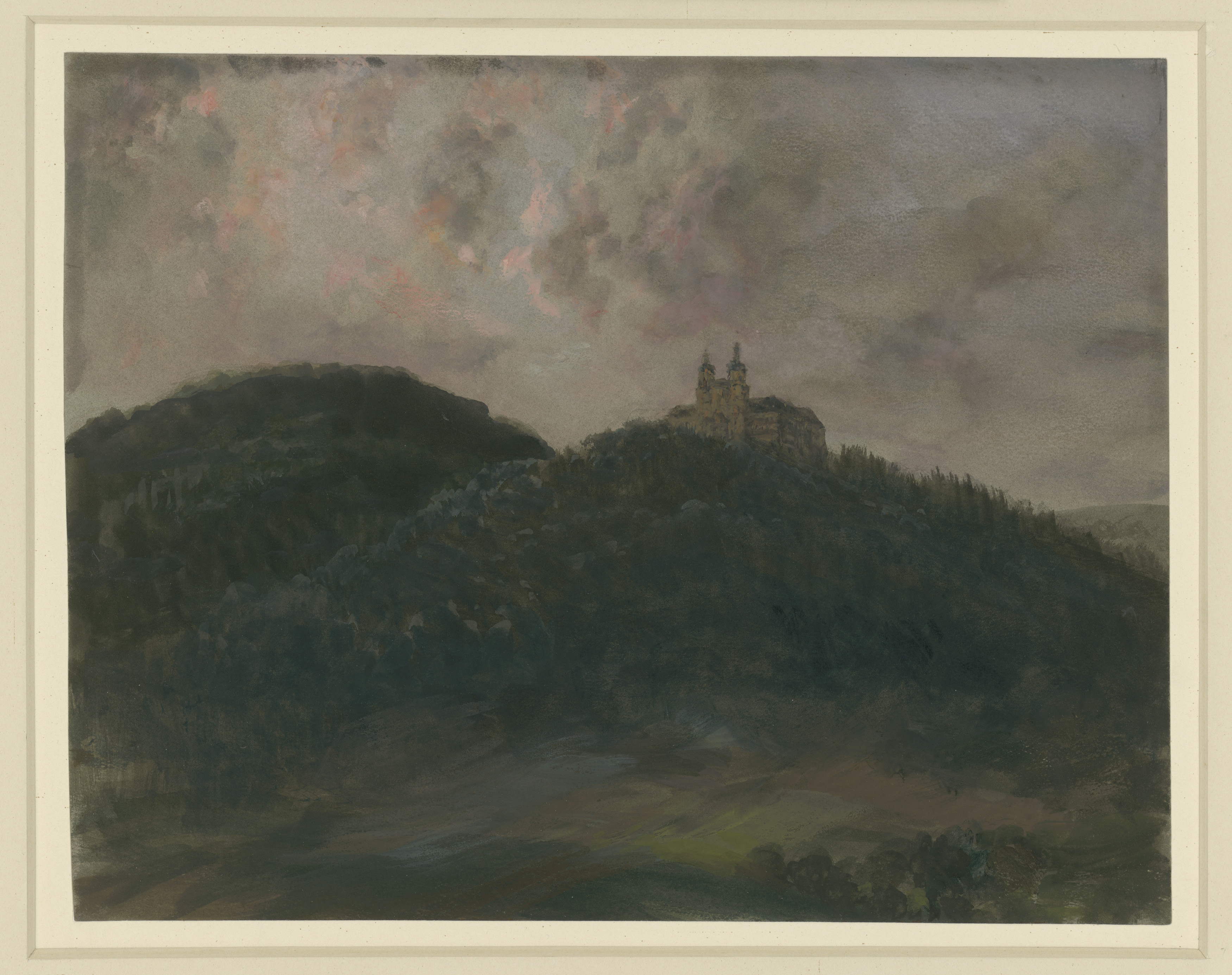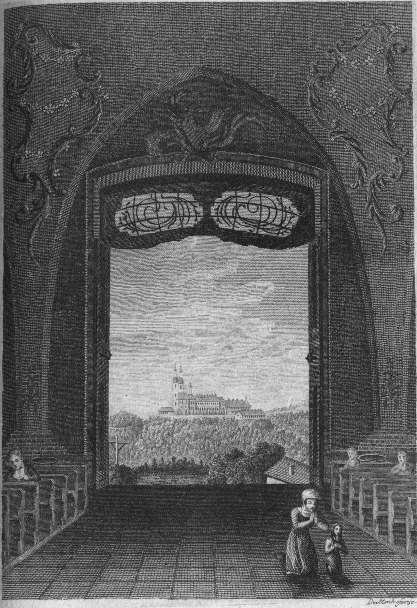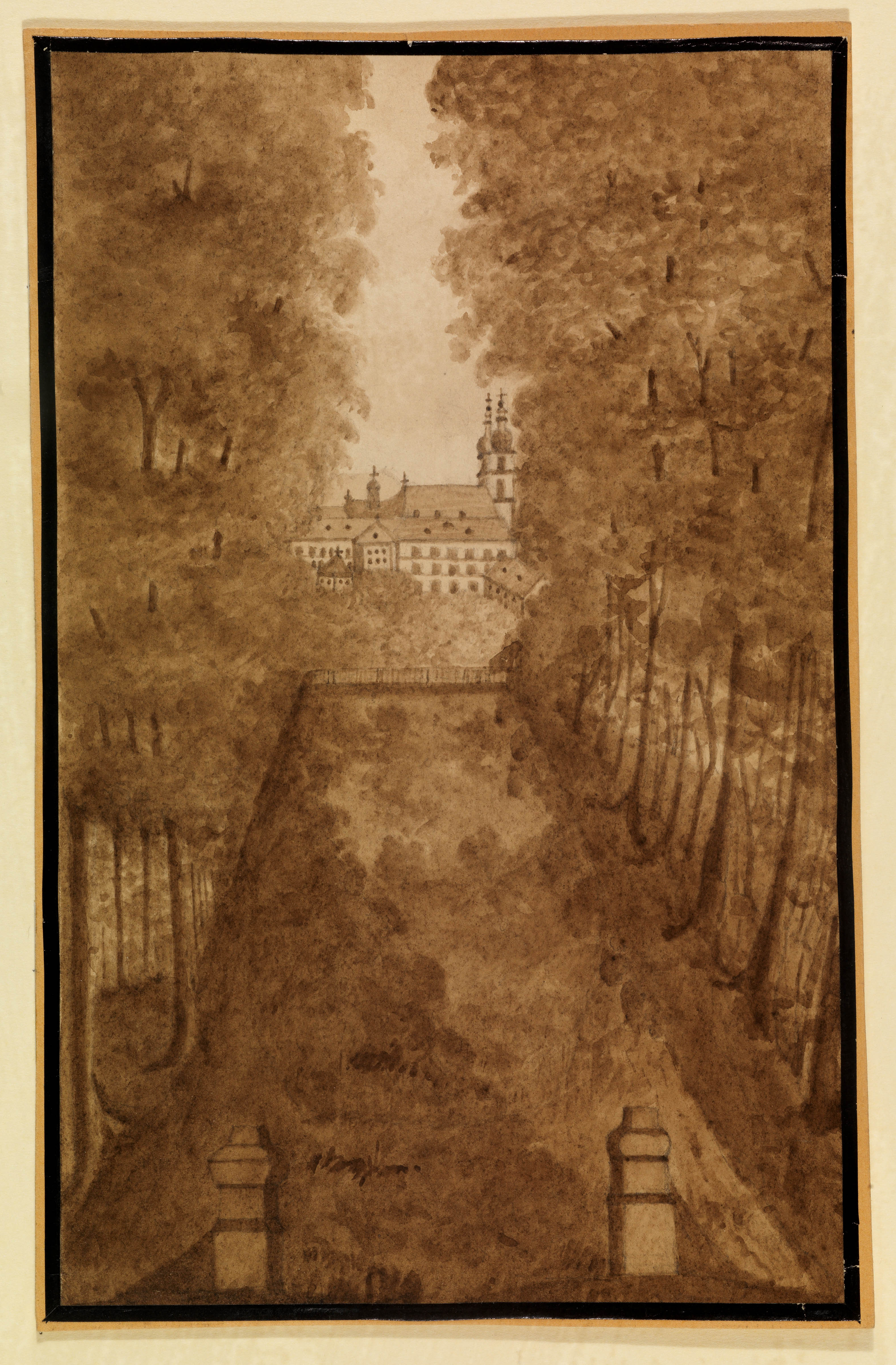 Ausdrücklich positiv konnotiert wird der Anblick von Banz durch die Frühromantiker und Reiseschriftsteller des späten 18. Jahrhunderts. Der erste war Wilhelm Heinrich Wackenroder, der 1793 feststellte: „…dann den Berg hinauf, auf welchem Banz, als ein großes Prachtgebäude, mit zwei hohen Türmen, ganz einsam liegt, und schon lange vorher einen angenehmen Prospekt gibt.“44 Ihm folgte Ernst Wilhelm Martius 1795: „Es ist ein weitläuftiges in einem irregulären Vierecke aufgeführtes schönes Gebäude, welches sich mit seinen Thürmen schon in der Ferne gut ausnimmt.“45