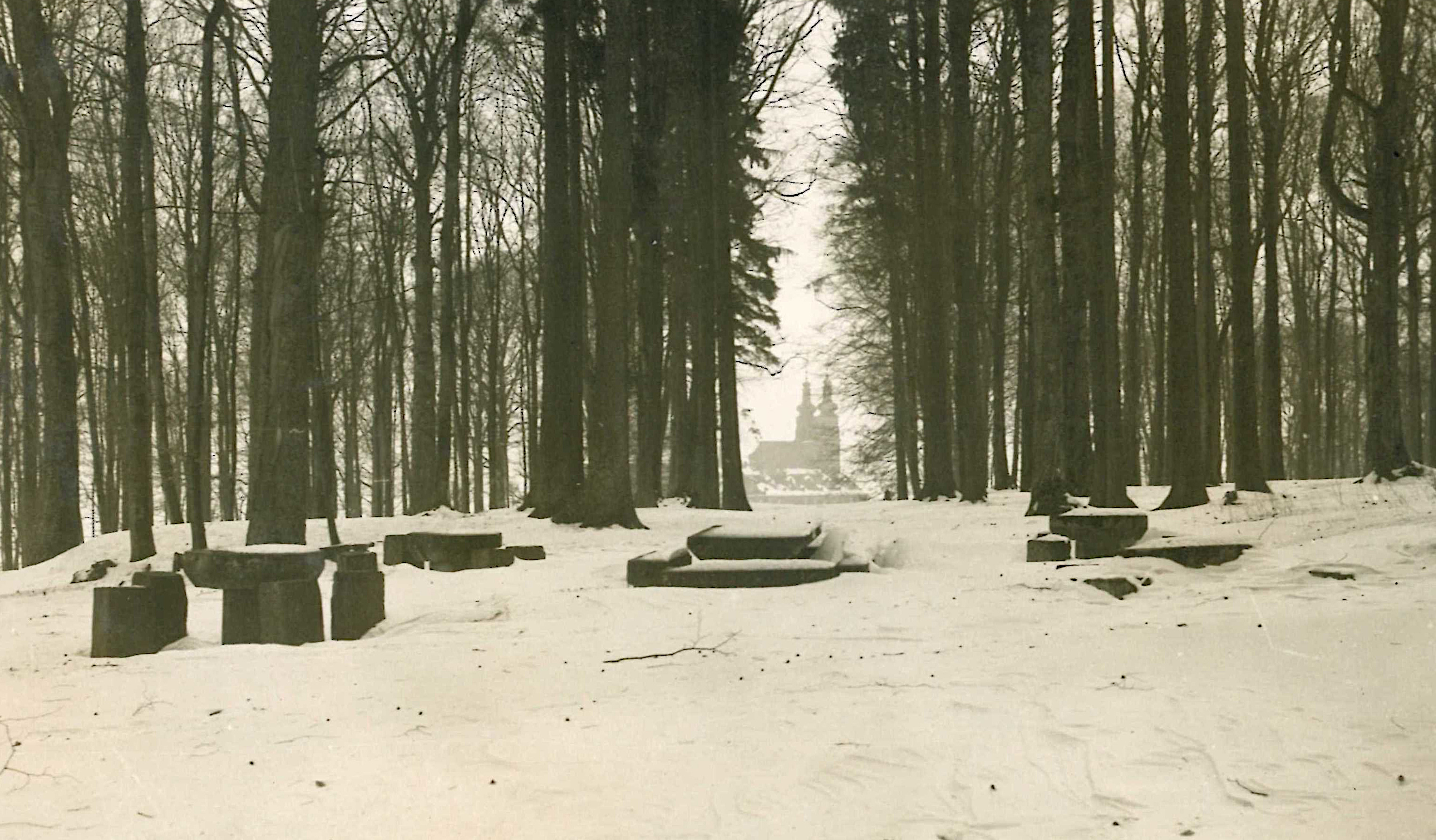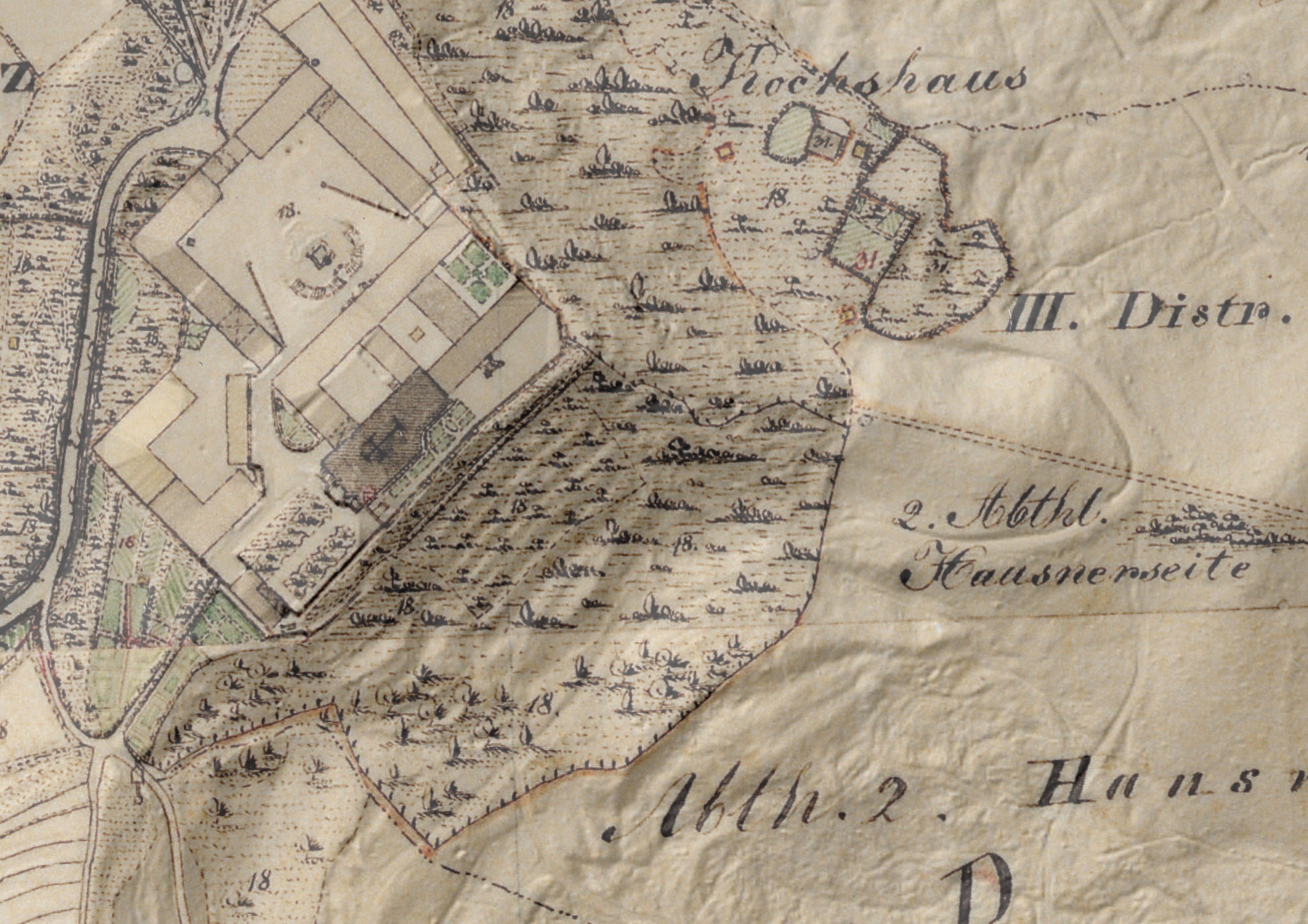 Roppelt nutzte dabei zwei Effekte, die in der Gartenkunst der zweiten Hälfte des 18. Jahrhunderts eine Rolle spielten. Im nördlichen Abschnitt setzte er eine Verengung ein, was das Blickziel in vermeintlich größerer Entfernung erscheinen ließ. Im südlichen Abschnitt erreichte er durch die Aufweitung die Herstellung eines Bildes der gesamten Klosteranlage, das den Blick konzentrieren und wiederum die Bedeutung des Blickzieles hervorheben sollte.51 Auch dieser Blick ist heute im nördlichen Teil zugewachsen, der Rahmenblick im südlichen Abschnitt immerhin eindrucksvoll erhalten.