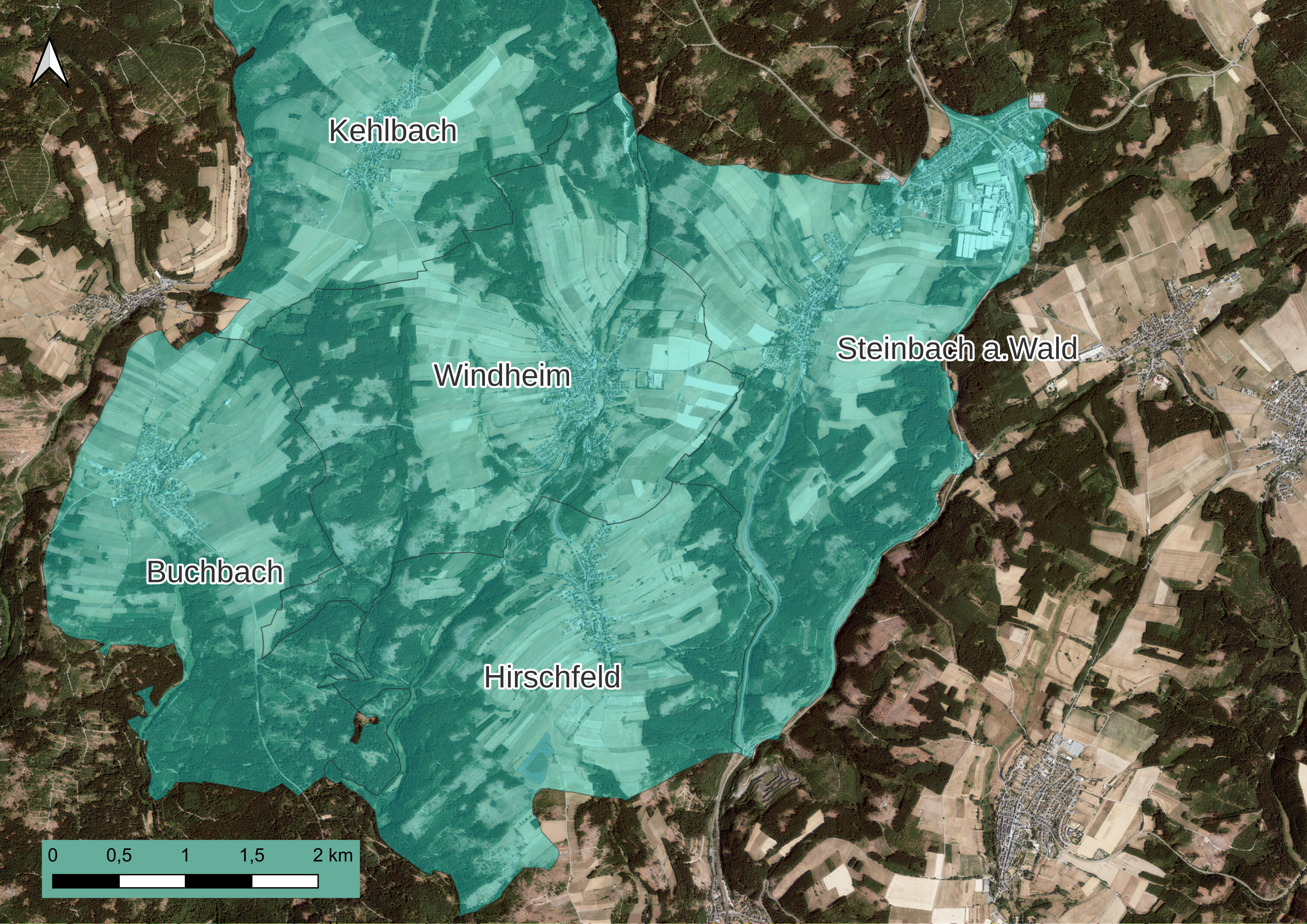 Bischof Otto II. von Bamberg übereignete dem Kloster Langheim 1187 den nemus Winthagin und die solitudine Tuschice im Frankenwald.85 Die urkundliche Überlieferung gibt keine Hinweise auf Siedlungsgründungen durch Langheim, dagegen auf territoriale Ansprüche anderer Herrschaftsträger, die möglicherweise ältere Rechte besaßen. Solche Erwerbstitel müssen jedoch nichts besagen, entscheidend für die kulturlandschaftliche Fragestellung ist die Siedlungsform. So können auch nach dem Übergang an Langheim bereits bestehende Einzel- und Streusiedlungen zu geregelten Dorfanlagen zusammengefasst worden sein. Diese mittlerweile europaweit anerkannte phasenhafte Siedlungsentwicklung von zerstreuten „proto-villages“ hin zu „concentrated settlements“ auch in jungbesiedelten Gebieten86 wurde für das Gebiet einiger württembergischer Klöster von Rainer Schreg exemplifiziert.87 Für den Frankenwald gibt es bisher weder archäologische noch archivalische Belege für derartige Vorgänge. Insbesondere für den Wald Windhagen lassen sich zumindest Analogien finden, die für eine Neuanlage der Siedlungen oder mindestens für eine vollständige Umstrukturierung eines bereits bestehenden Siedlungsmusters durch Langheim sprechen. 1222 sind in oder anstelle dieses Waldes die Dörfer Windheim, Steinbach, Kehlbach, Buchbach, Hirschfeld und Ebersbach (Wüstung) genannt.88 Alle diese Siedlungen sind langgestreckte Straßenangerdörfer mit teils hofanschließender Breitstreifenflur. Auch für die Wüstung Ebersbach südöstlich Steinbach lässt sich dies aus erhaltenen Parzellenstrukturen rekonstruieren. Lediglich Windheim weicht, wohl durch spätere Verdichtung von diesem Grundmuster etwas ab. Die hohe Einheitlichkeit spricht für einen gemeinsamen Herrschaftsträger, der diese Siedlungen angelegt hat oder hat anlegen lassen. Für einen Siedlungsakt aus einem Guss sprechen auch die Namen, die sich von den üblichen Rodungssiedlungen Oberfrankens mit den Grundwörtern „-reuth“ und „grün“ abheben und stereotype Naturgegebenheiten wie Buche, Stein, Eber und Hirsch mit längst nicht mehr üblichen Grundwörtern wie „-bach“, „-feld“ oder „-heim“ kombinieren. Dies spricht sehr für die Zisterze Langheim, denn diese Namensgebung folgt der bei den Zisterziensern in Süddeutschland üblichen Methode, man denke an Aldersbach, Bronnbach, Eberbach, Birkenfeld, Fürstenfeld oder Walderbach.