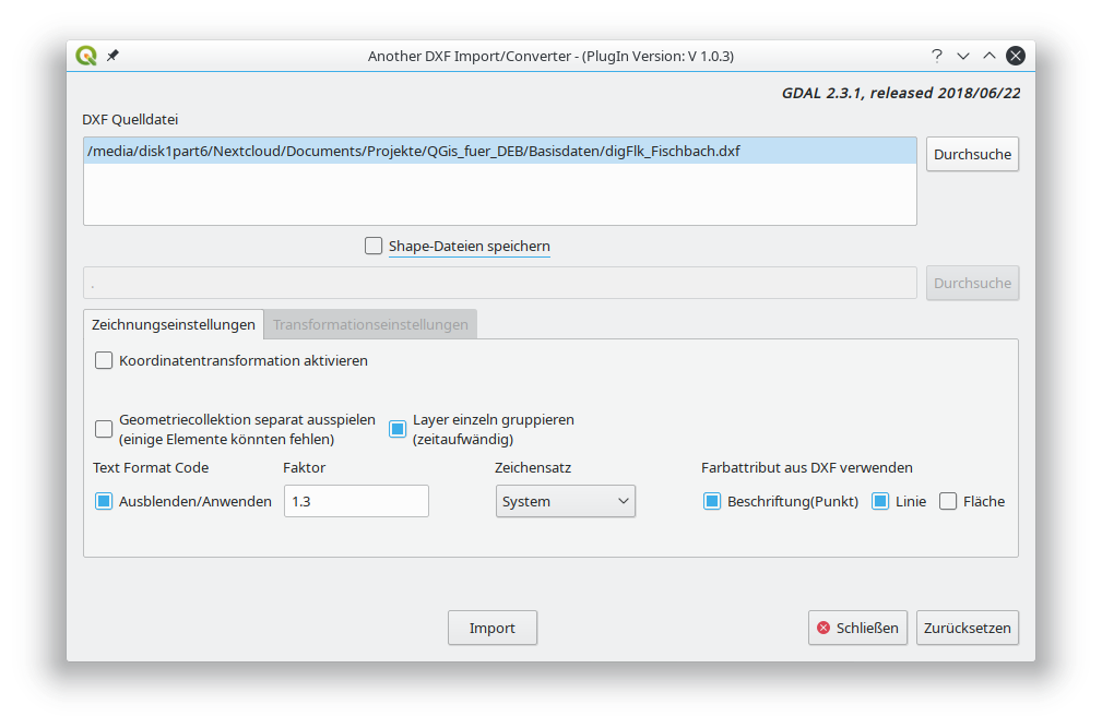 Das Problem beim Import in QGIS ist vor allem die richtige Darstellung der Textlabel zu den Gebäuden, Straßen und Flurstücken. Wie dies möglicherweise geregelt werden kann, wird im Folgenden erläutert.