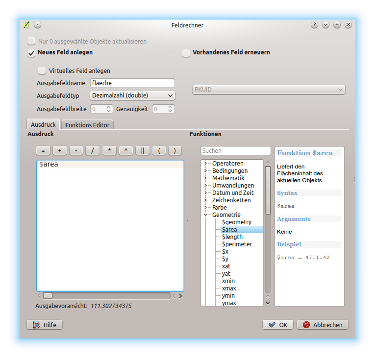 Da dies für viele unterschiedliche Werkzeuge in QGIS gilt, soll es an dieser Stelle ausführlich dargestellt werden: