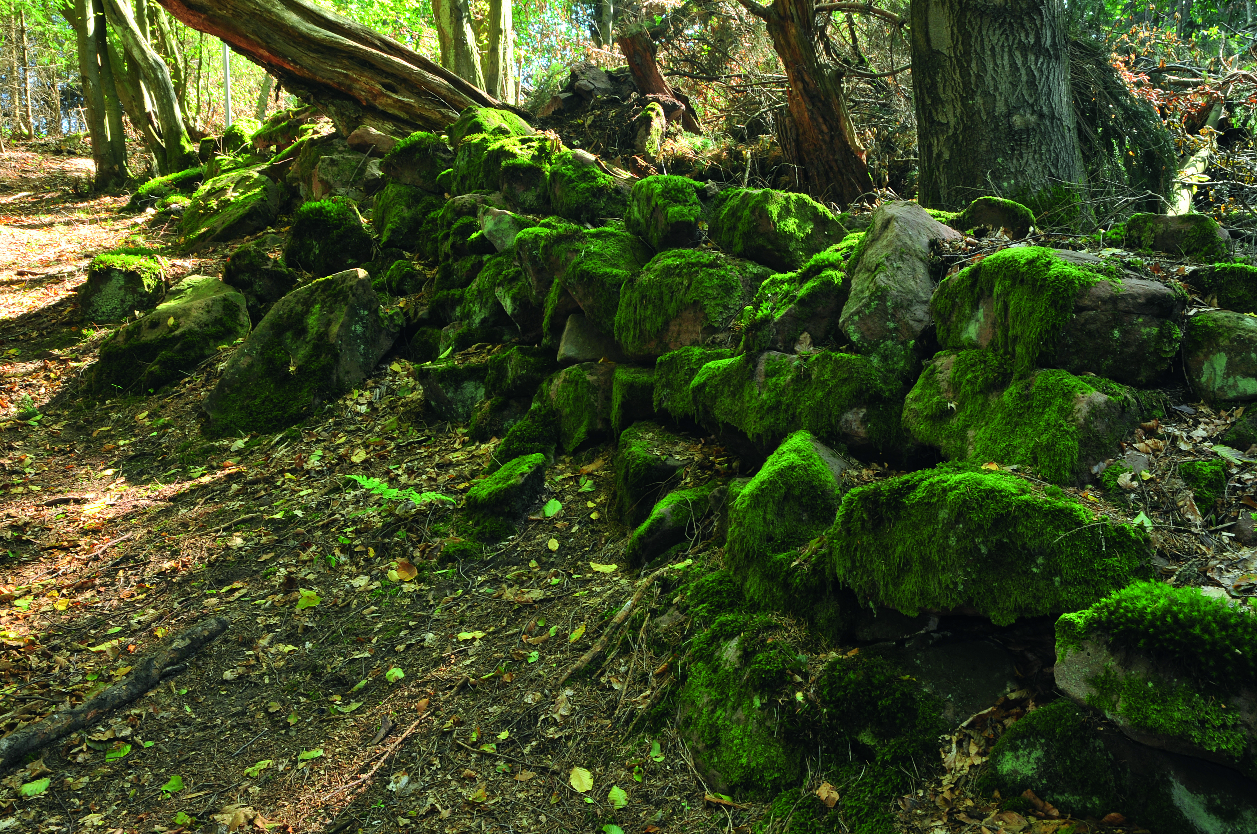 Es gab aber auch einzelne Fälle, wo die Grenze zwischen Wald und Flur zusätzlich markiert, aber auch funktional verstärkt wurde. Ein Beispiel sind die Wildmauern des Spessarts, wie sie etwa in Abschnitten noch bei Bischbrunn, Dammbach, Heimbuchenthal und Habichtsthal erhalten sind. Solche Wildmauern dienten dazu, die Dorfflur vor dem Eindringen des Wildes zu schützen, eine Idee, die sicherlich viele Landwirte heute auch noch gut finden würden. Sie wurden seit dem 18. Jahrhundert errichtet, aber schon Mitte des 19. Jahrhunderts aufgegeben, da sie zu viele Kosten und Unterhalt verursachten.40