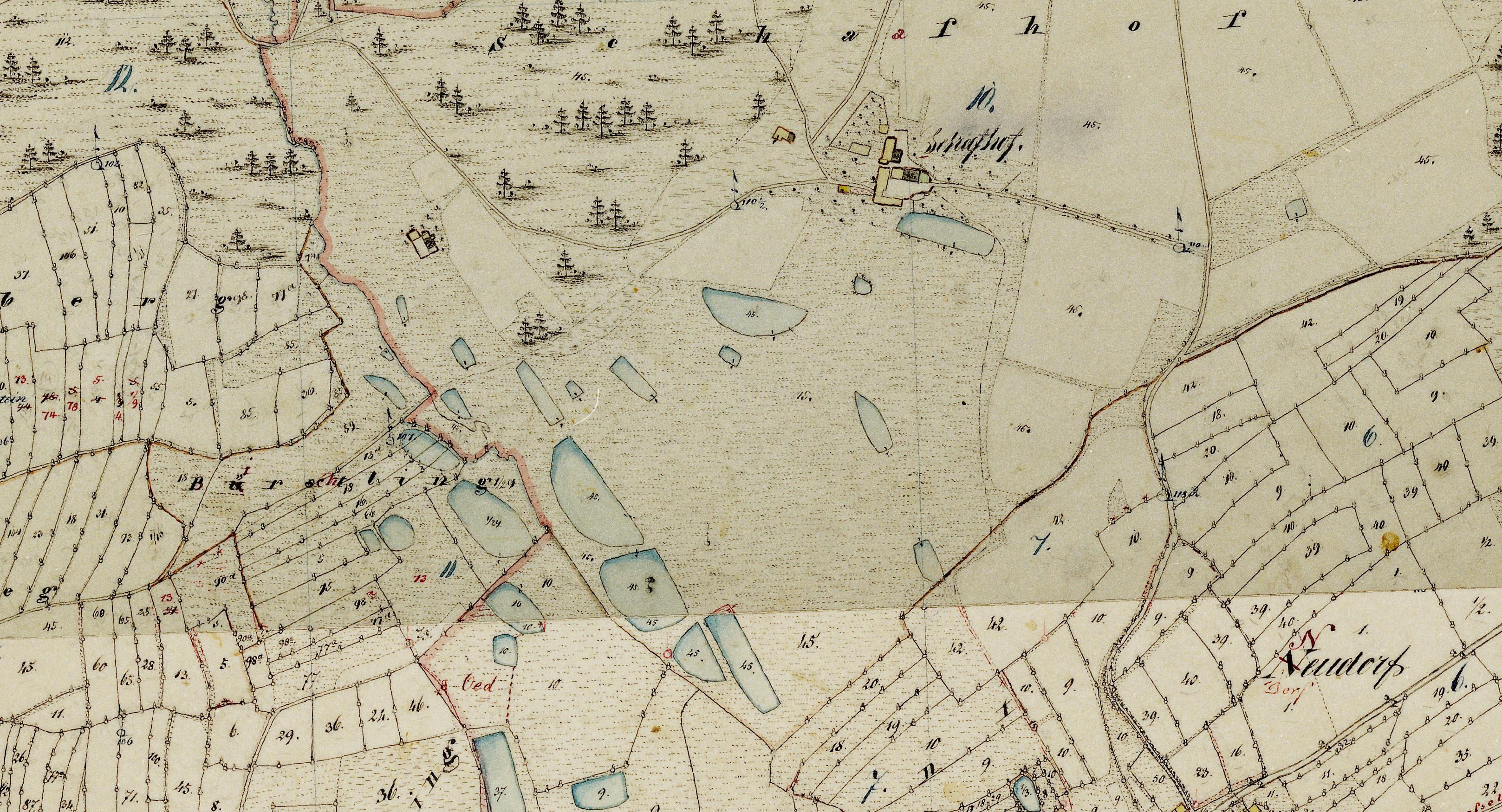 Teiche am Schafhof bei Neudorf. Quelle: Uraufnahme 1852, © BVV