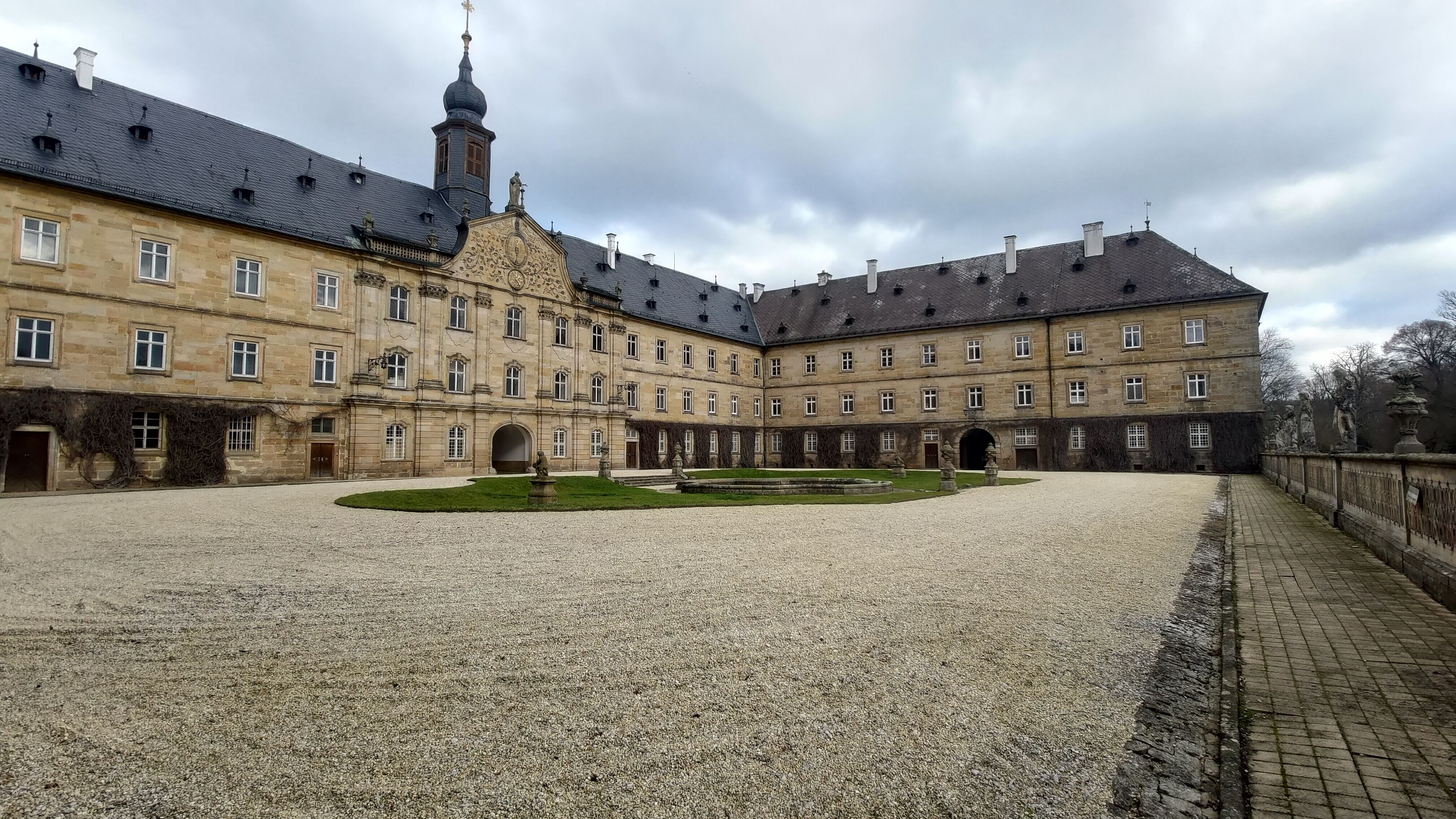 Der barocke Umbau begann unter 1681 unter Abt Thomas Wagner (1677-1689) mit dem östlichen Konventflügel und gewann an Dynamik mit Abt Gallus Knauer (1690-1728), der den bereits an der Mutterabtei Ebrach tätigen Leonhard Dientzenhofer verpflichtete, der parallel zum Konvent den Abteiflügel errichtete. Ab 1727 war der sächsisch-weimarische Hofarchitekt Gottfried Heinrich Krohne als Baumeister des Fürstenbau oder der neuen Abtei tätig. Schließlich erbaute er unter Abt Stefan Mösinger (1734-51) den Konvent bis 1742 neu. Auch unter dem Einfluss Balthasar Neumanns war nun eine regularisierte prachtvolle Barockanlage entstanden.22 Wenn jener auch 1742 Entwürfe für den Neubau der Klosterkirche fertigte, schloss schließlich der vom Kloster zu verantwortende Neubau der Wallfahrtskirche Vierzehnheiligen deren Umsetzung aus.23 Noch unter dem letzten Abt Candidus Hemmerlein (1791-1802) wurde der Konvent nach Osten erweitert, was durchaus verwunderlich ist, denn der wirtschaftlich denkende Abt hielt in einer nüchternen Zeit doch am prachtvollen Konzept der ersten Jahrhunderthälfte fest.24 Wie in Banz und auch im Mutterkloster Ebrach war schließlich ein einheitlicher, schlossartiger Komplex entstanden, im Gegensatz zu Banz blieb in den Zisterzen allerdings die frühgotische Klosterkirche erhalten.
