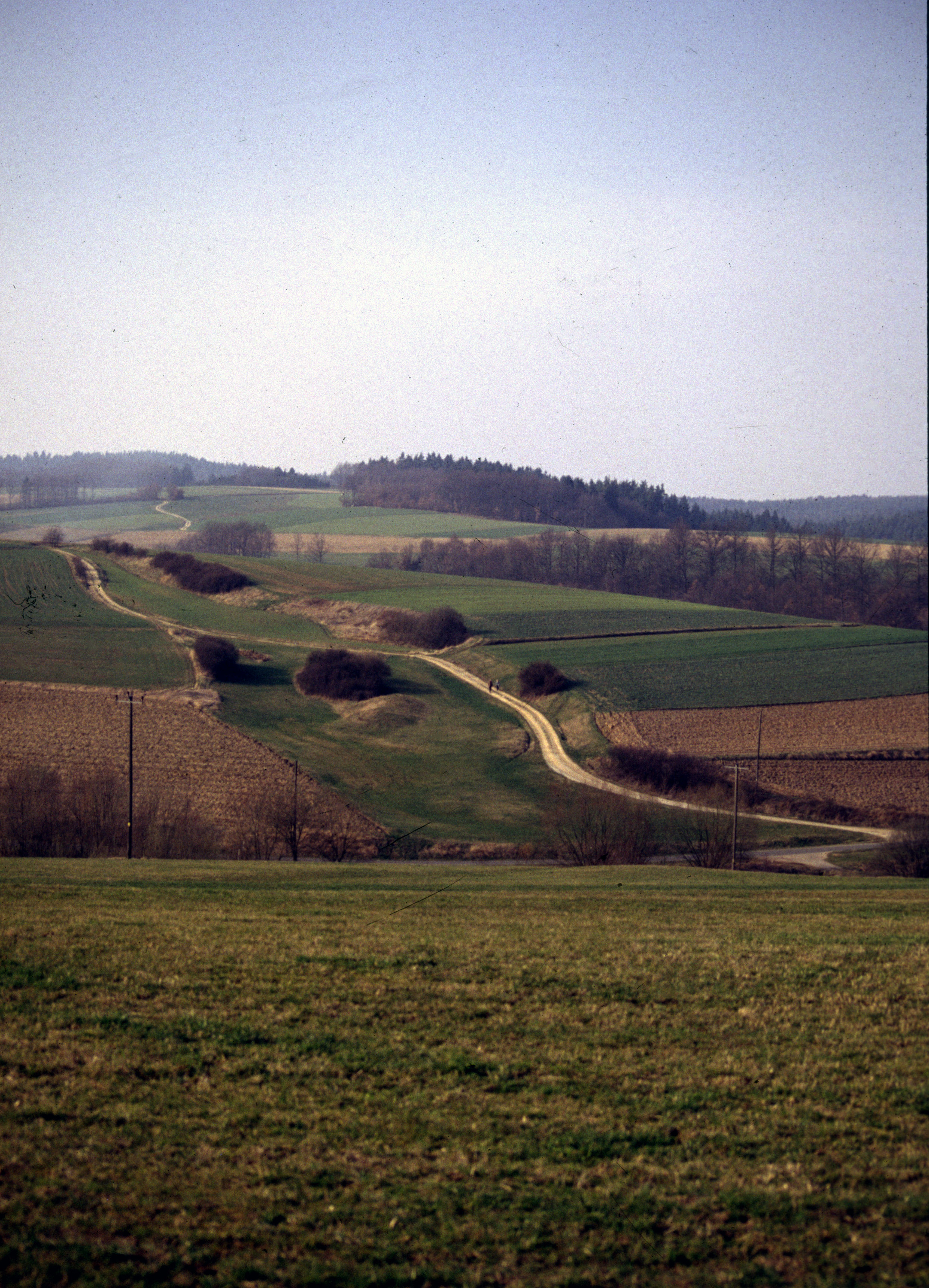 Auch Gräben zwischen einzelnen Parzellen finden sich nur noch selten. Sie waren ohnehin eher im Wiesen- als im Ackerland zu finden. Eine historische Form der Ackerbereitung führte fast zwangsläufig zu Grabenräine, die des Wölbackers oder auch Hochackers. Im Mittelalter war dies die gebräuchlichste Form des Ackerns überhaupt. Das Geheimnis des Wölbackers und seiner Entstehung ist noch immer nicht endgültig gelüftet, es gibt etliche sich widerstreitende Theorien. Eine der schlüssigsten ist, dass man mit dem damals üblichen Beetpflug die Erde, egal in welcher Pfugrichtung, auf die Innenseite des Ackers wendete.47 Jedenfalls blieb der kostbare Boden konzentriert bei seinem Besitzer, während zum Nachbargrundstück beidseitig ein Graben entstand. Je nach Region wurde der Wölbackerbau früher oder später aufgeben. Die Relikte von Wölbäckern sind zwar ein eindrucksvolles Element der historischen Kulturlandschaft, sind heute aber nur unter Dauergrünland oder unter Wald erhalten. Heutige Reste finden sich im Raum zwischen Rosenheim und Miesbach, auch um Landsberg am Lech sind größere Flächen erhalten, sonst treten sie nur noch vereinzelt auf.