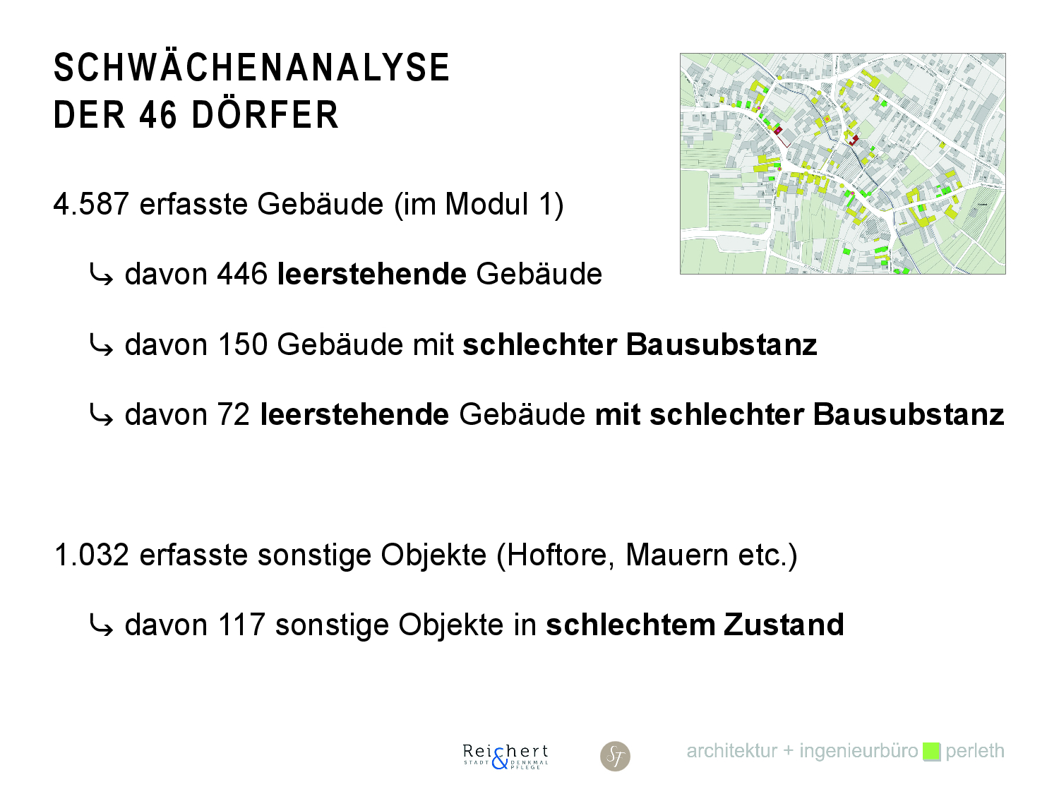 Das Modul 1 dokumentiert und bewertet den baulichen und städtebaulichen Bestand eines historischen Ortskerns oder eines Quartiers