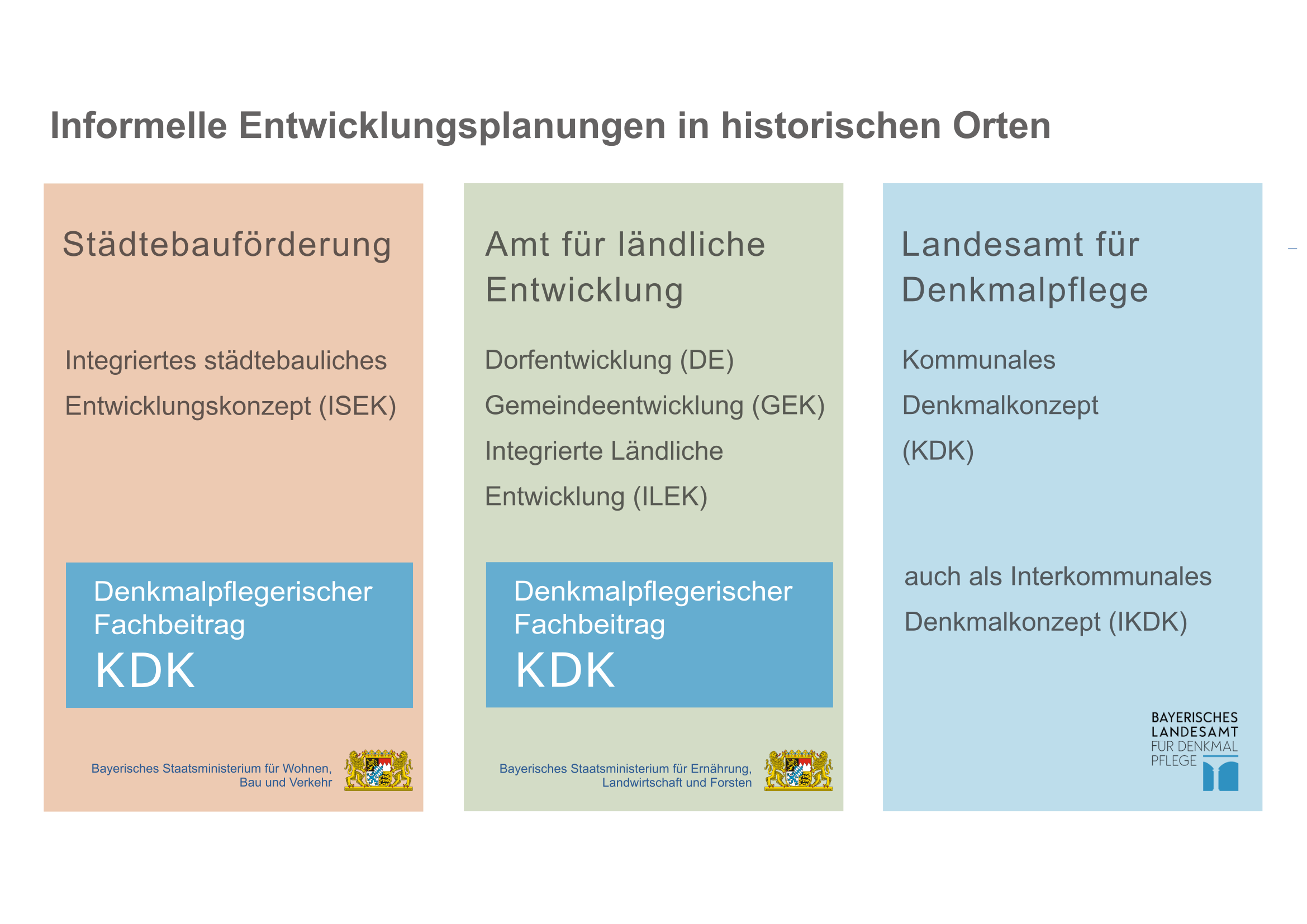Seit dem Ende der 1980er Jahre hat das Bayerische Landesamt für Denkmalpflege informelle Ansätze in der städtebauliche Denkmalpflege verfolgt