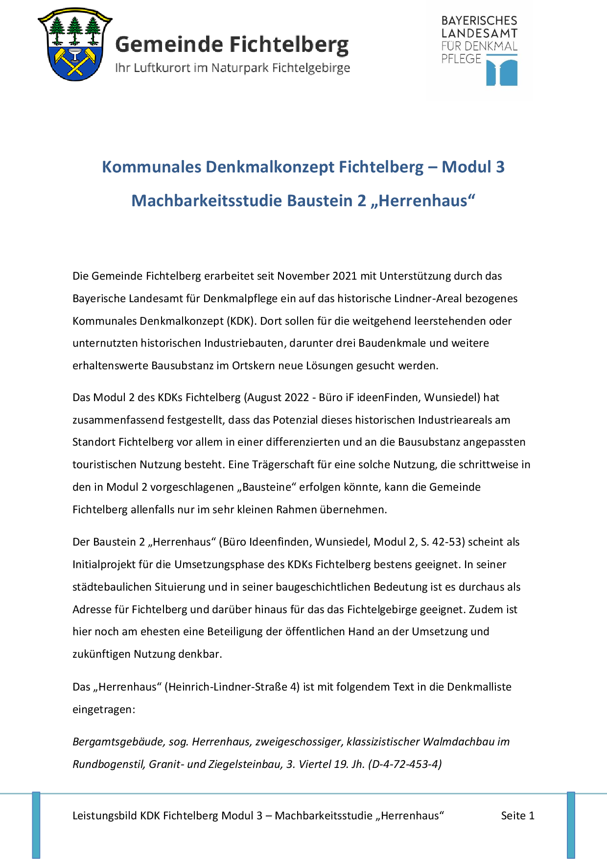 Modul 3 – Machbarkeitsstudie für die neue Nutzung eines denkmalgeschützten oder schützenswerten Gebäudes