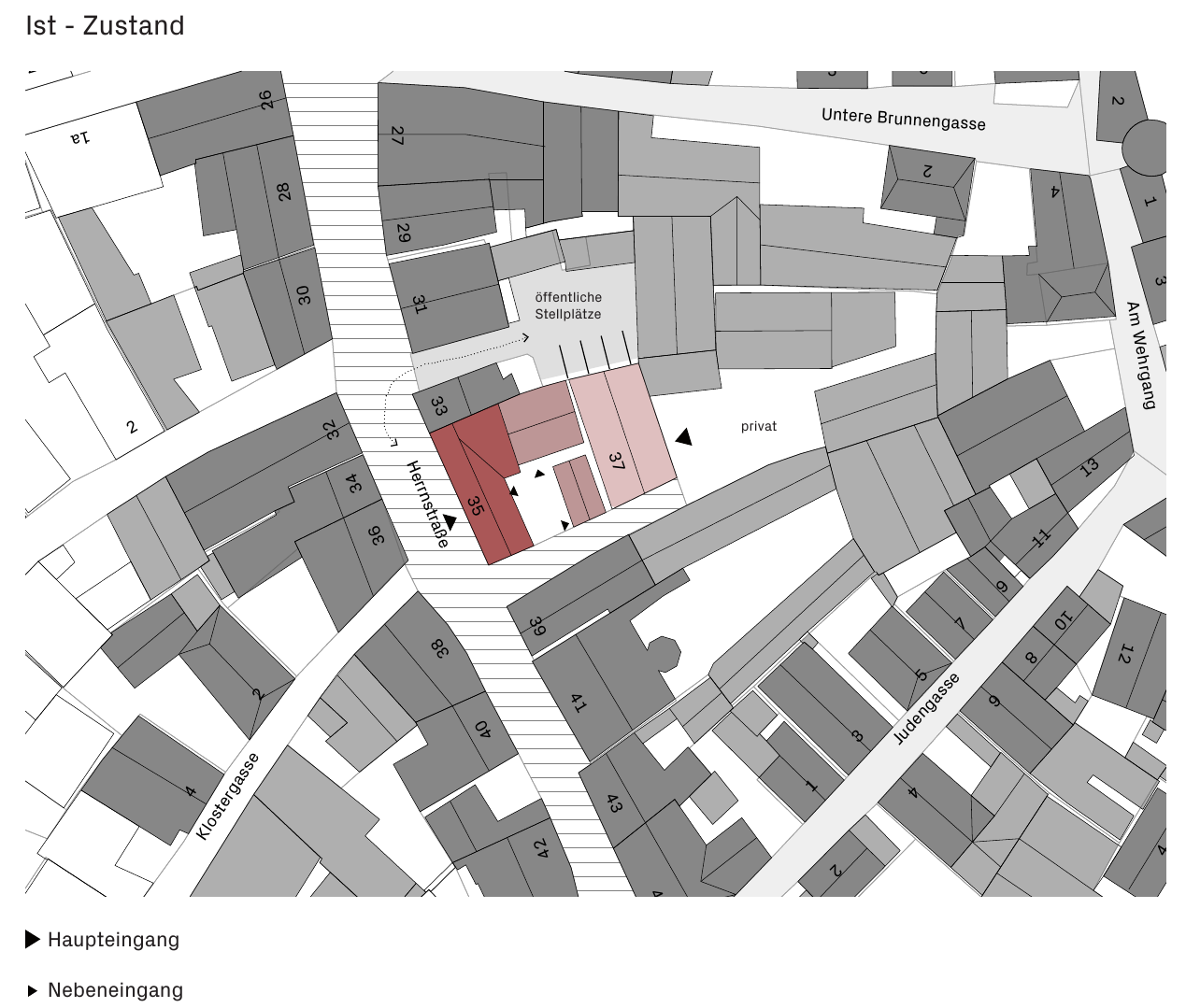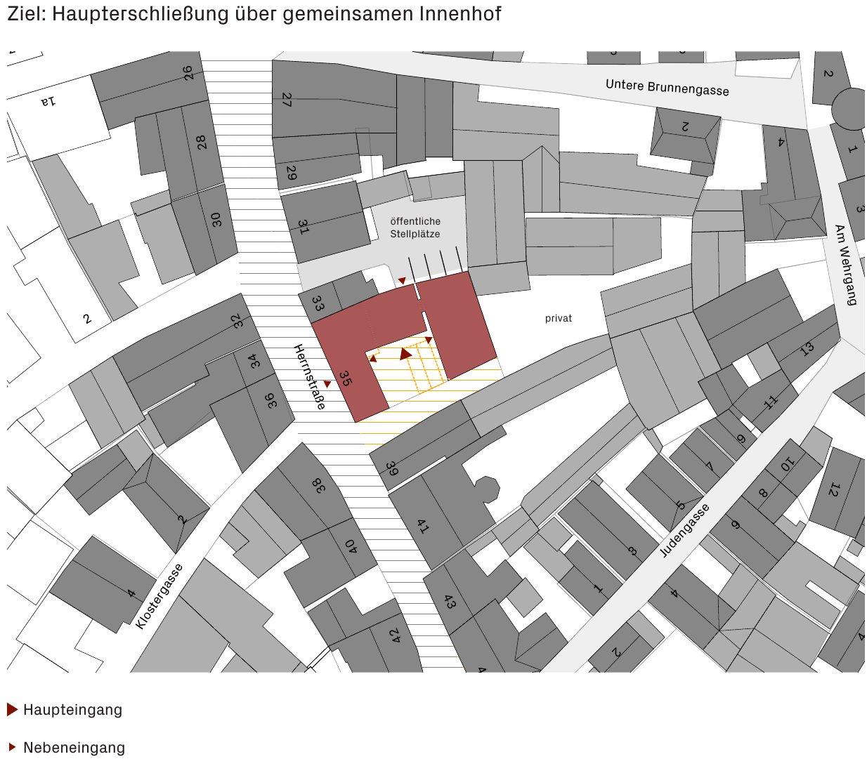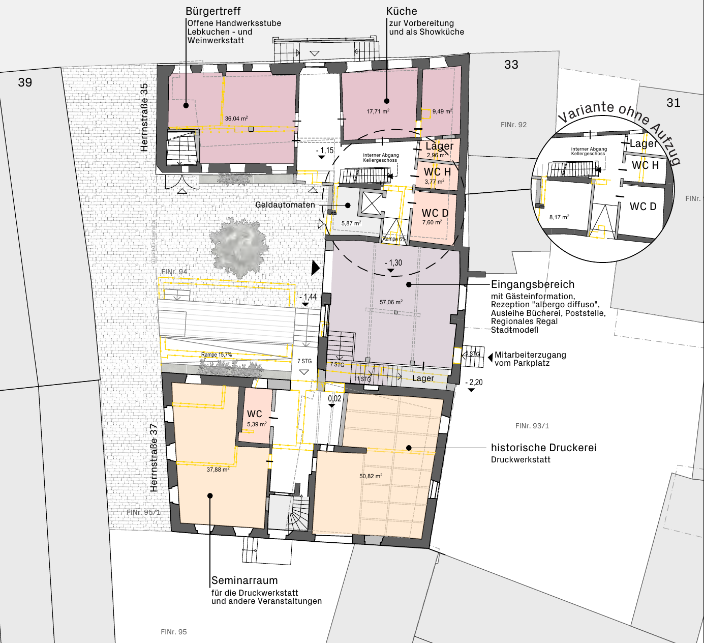 KDK Mainbernheim Modul 3 – Herrnstraße 35 und 37 – Nutzungskonzept für die Erdgeschossebene. Erarbeitung: Schlicht Lamprecht Kern Architekten, Schweinfurt