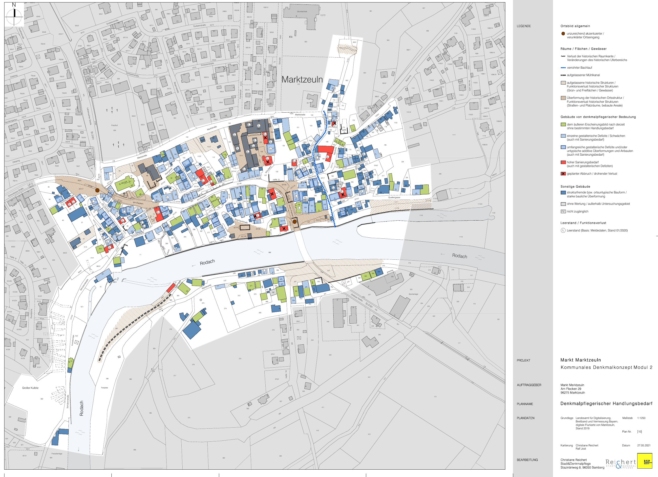 „Plan des Handlungsbedarfs aus städtebaulich-denkmalpflegerischer Sicht“ für Marktzeuln. Erarbeitung: Büro Reichert, Stadt und Denkmalpflege, Bamberg/ Büro RSP, Architektur und Stadtplanung, Bayreuth