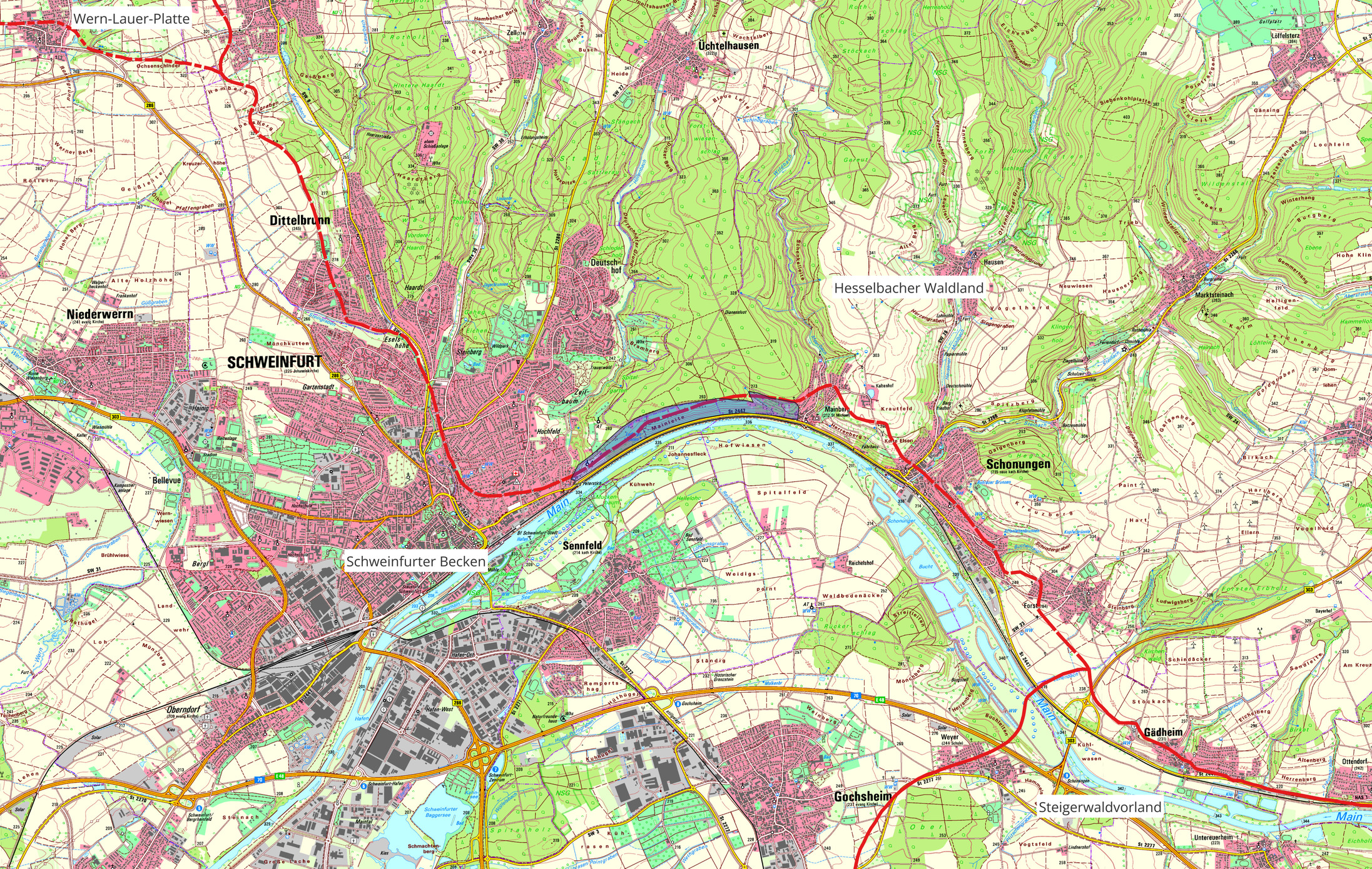 Kurzbeschreibung: Schutzgebietsbezeichnung „Naturraum Hesselbacher Waldland (139), Mainleite (678.04 und 662.01) lautet „stark ausgeprägte Maintalhänge mit aufgelassenen Weinbergen und Gehölzsukzessionen unterschiedlicher Stadien (Teilfläche im Landkreis Schweinfurt)“.