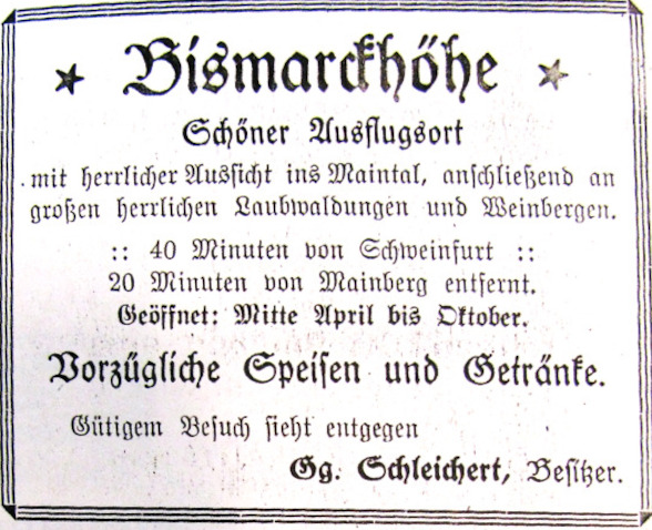 Inserat der Bismarkhöhe von Besitzer Georg Schleicher