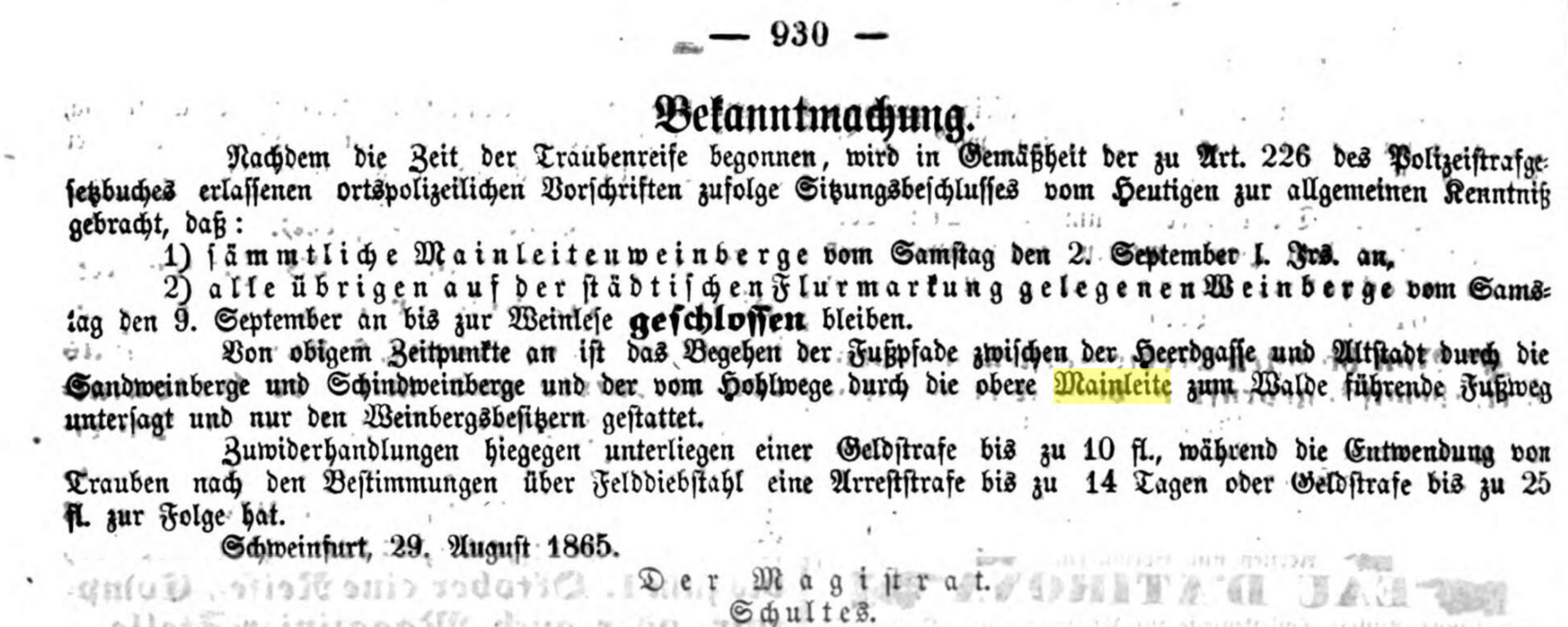 1323 lässt sich Graf Berthold von Henneberg-Schleusingen vom Hochstift Eichstätt Weinberge „an der Meyenleyten“ verleihen