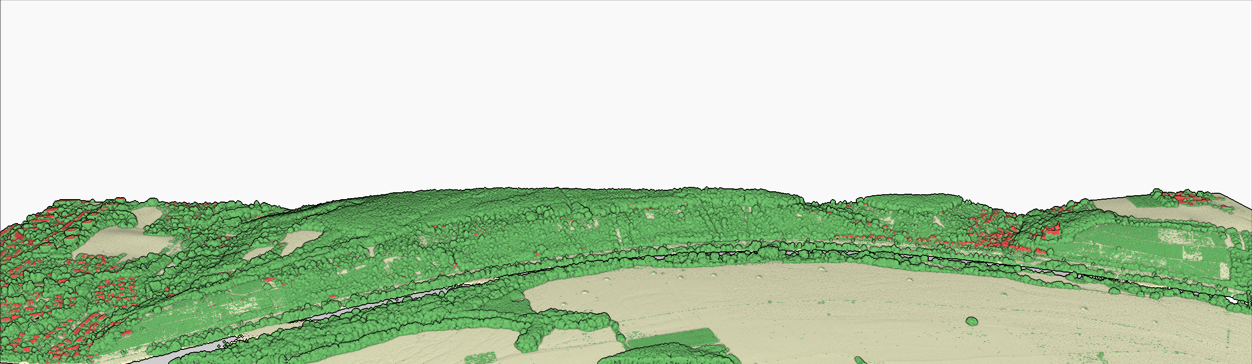 3D-Modell der Mainleite, Blick von Süden. GIS-Bearbeitung: Thomas Gunzelmann, Datengrundlage: Laserdaten Bayerische Vermessungsverwaltung, Creative Commons Namensnennung 4.0 International Lizenz (CC BY 4.0)