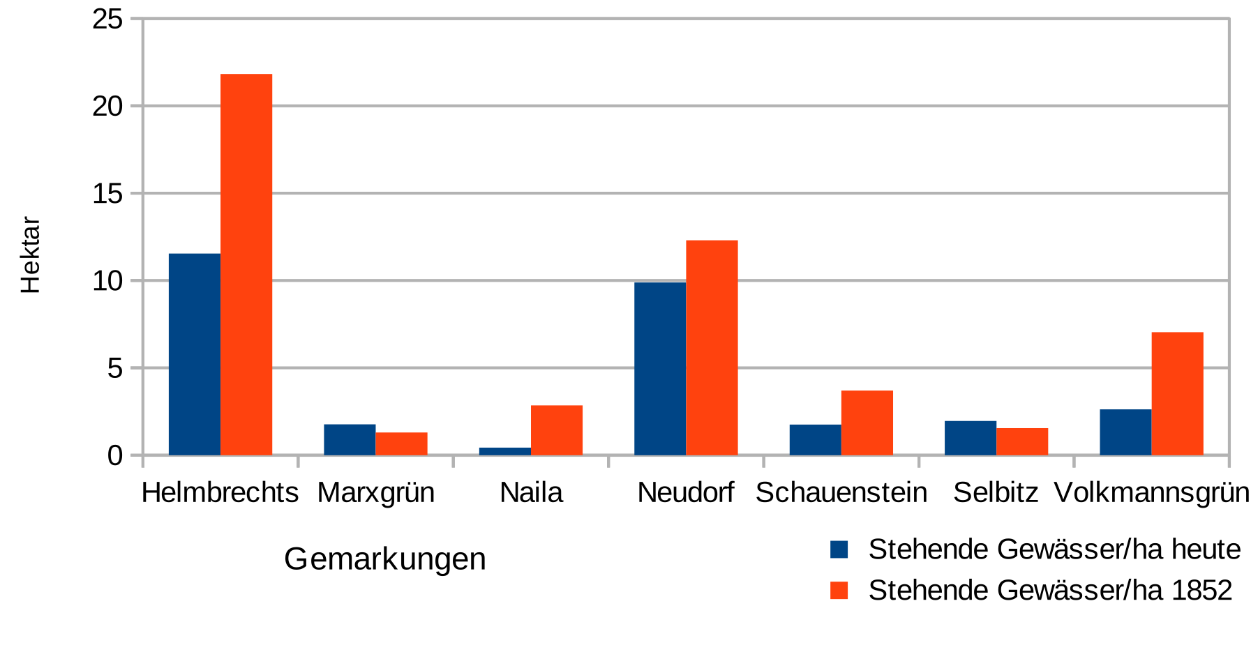 | Nutzungsart | Mühlgraben/ha | Graben/ha | Fließgewässer/ha | Teich/ha |