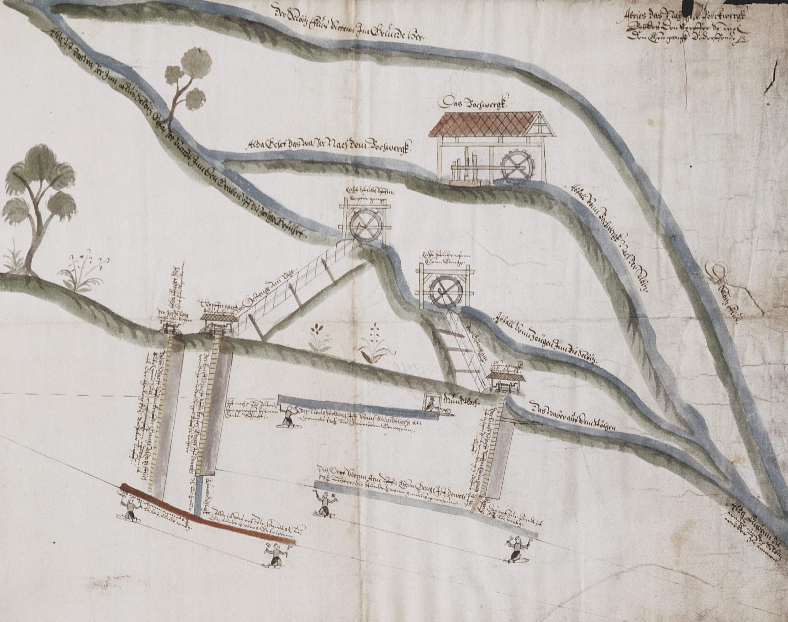 Detaildarstellung der Wasserkunst mit den beiden Kunstgezeugen für den Kupfergang und den Eisengang