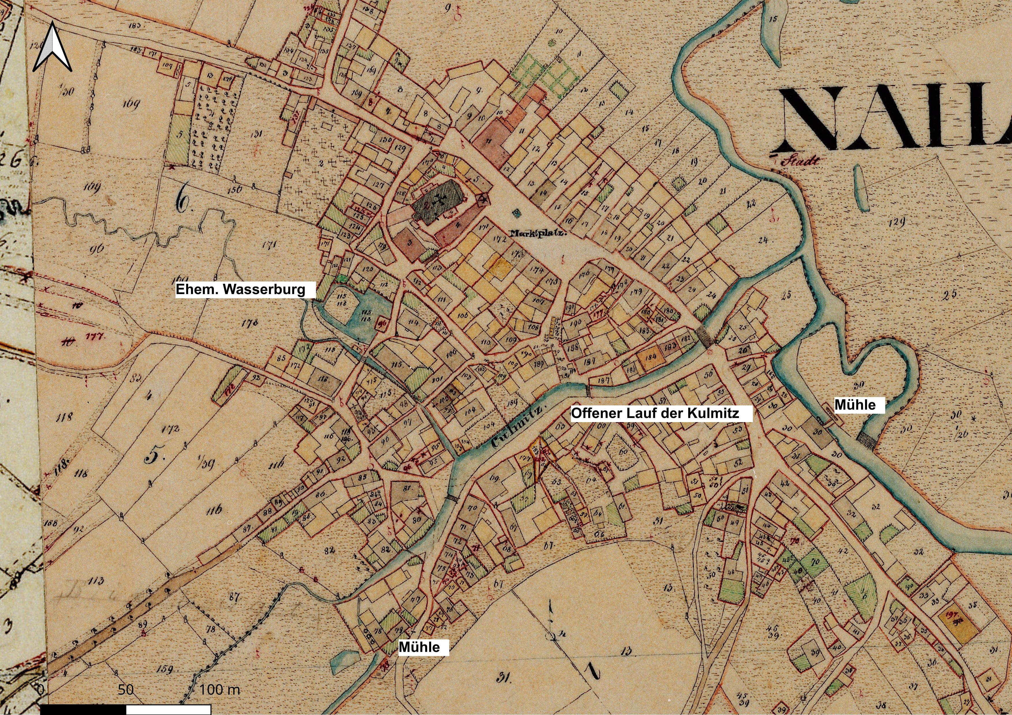 Naila – Uraufnahme 1852 Gewässer innerhalb der Siedlung