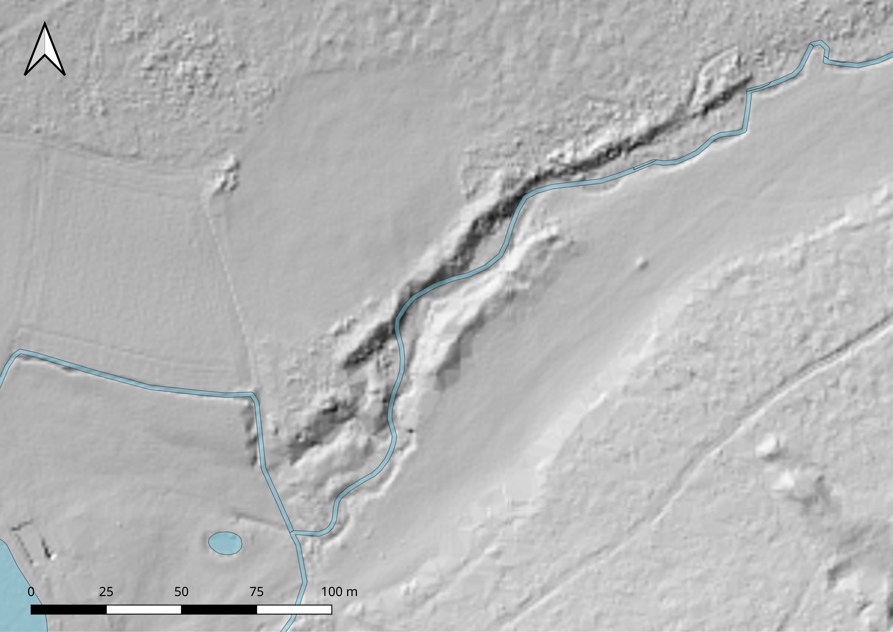 Seife bei der Ringlasmühle am Oberlauf der Ölsnitz (Untreubach) nördlich Ahornberg. Kartengrundlage: Schummerung © BVV, GIS-Bearbeitung: Thomas Gunzelmann