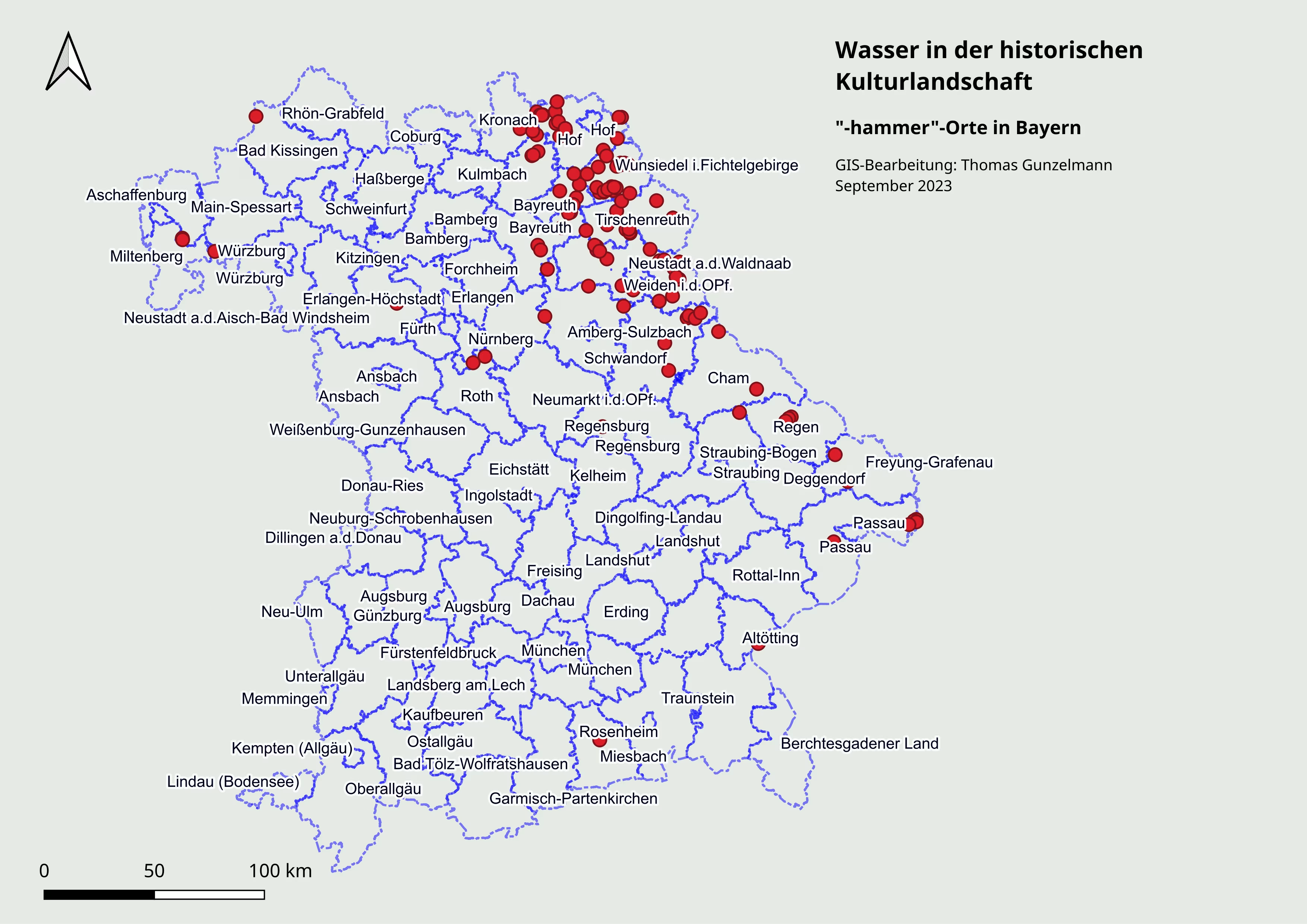„-hammer“-Orte in Bayern. GIS-Bearbeitung: Thomas Gunzelmann